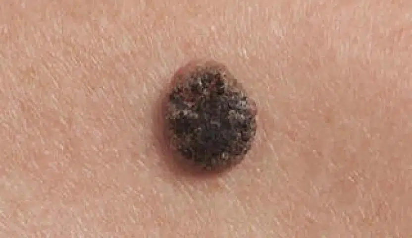تعد الميلانوما أحد أشكال سرطان الجلد الحميد والأكثر شيوعًا، وعادةً ما ينمو هذا النوع بشكل أفقي بطبقات الجلد العليا، ومن ثم يبدأ بالانتشار إلى الطبقات الأعمق، ويصاحب هذا النوع بعض الأعراض الجانبية مثل ظهور آفة بالمواصفات الآتية: