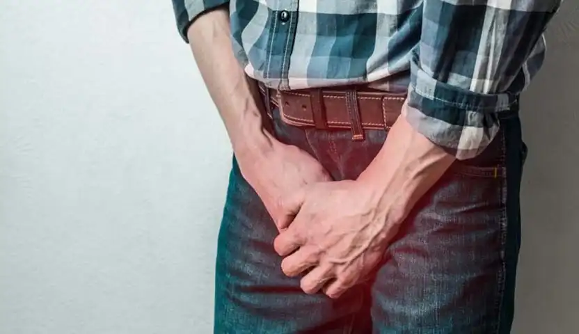 - تحسس برفق كيس الصفن حتى تصل للخصية.