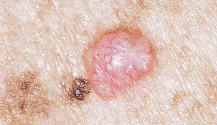 - سرطان الجلد القاعدي العقدي: هو من أكثر الأنواع شيوعًا وانتشارًا، ويظهر على البشرة في شكل نتوء شفاف بلون الجلد.
